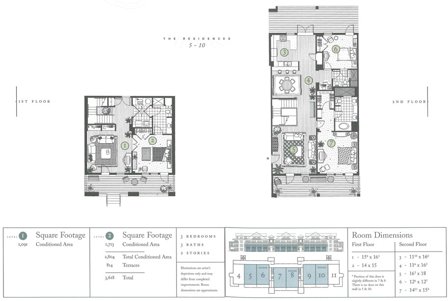 Located in the heart of Watercolor, Town Center Beachside is a multi-family condominium community offering 22 residences at the southern tip of Town Center. One main building and two bungalows make up Town Center Beachside condos. The main building consists of 16 units while the two bungalows each have three multi-story units. The buildings are four stories tall and surround their own private pool. Each individual unit is two stories tall. Units range from a layout of three bedrooms and three baths to ones with four bedrooms and four and a half baths. Acclaimed architect Graham Gund incorporated the natural beauty of the Gulf of Mexico into the design of Town Center Beachside condos.