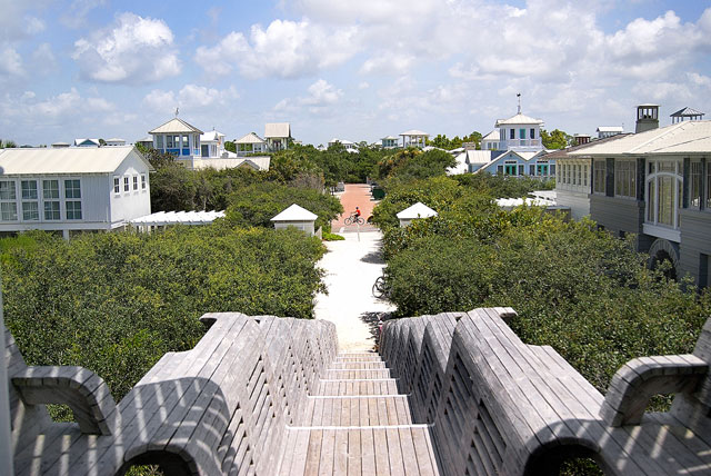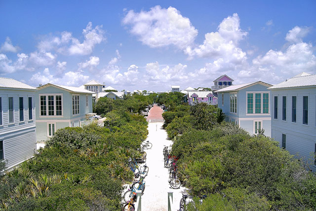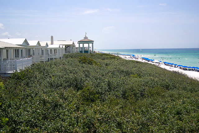 The planned community of Seaside, created by Robert and Daryl Davis in 1981, sits comfortably along Highway 30A