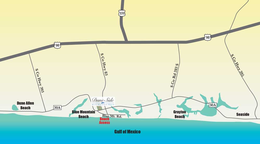 The neighborhood is particularly close to Hwy 98, which provides access to Miramar Beach, Destin, Laguna Beach, Panama City, Fort Walton Beach and Pensacola. Dune Side is also positioned within three miles of Route 331, and the neighborhood's homeowners can use a shuttle that will transport them to the area's picturesque beaches.